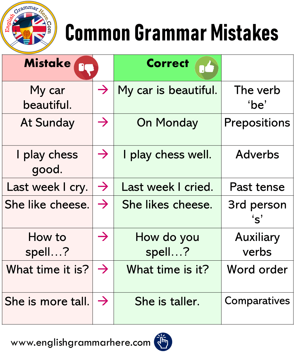 English Common Grammar Mistakes English Grammar Here
