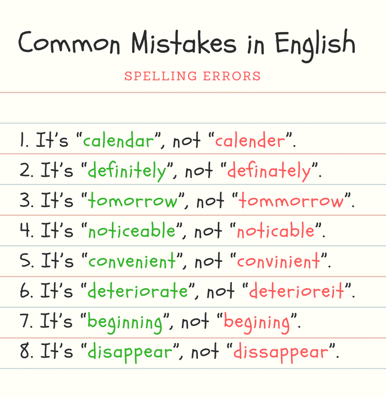 List Of 70 Common Spelling Mistakes In English ESLBUZZ