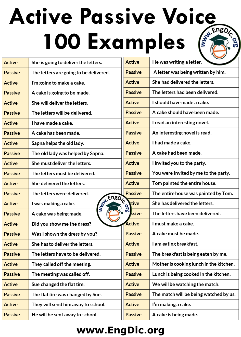 Download and Print 100 active and passive voice Listed below