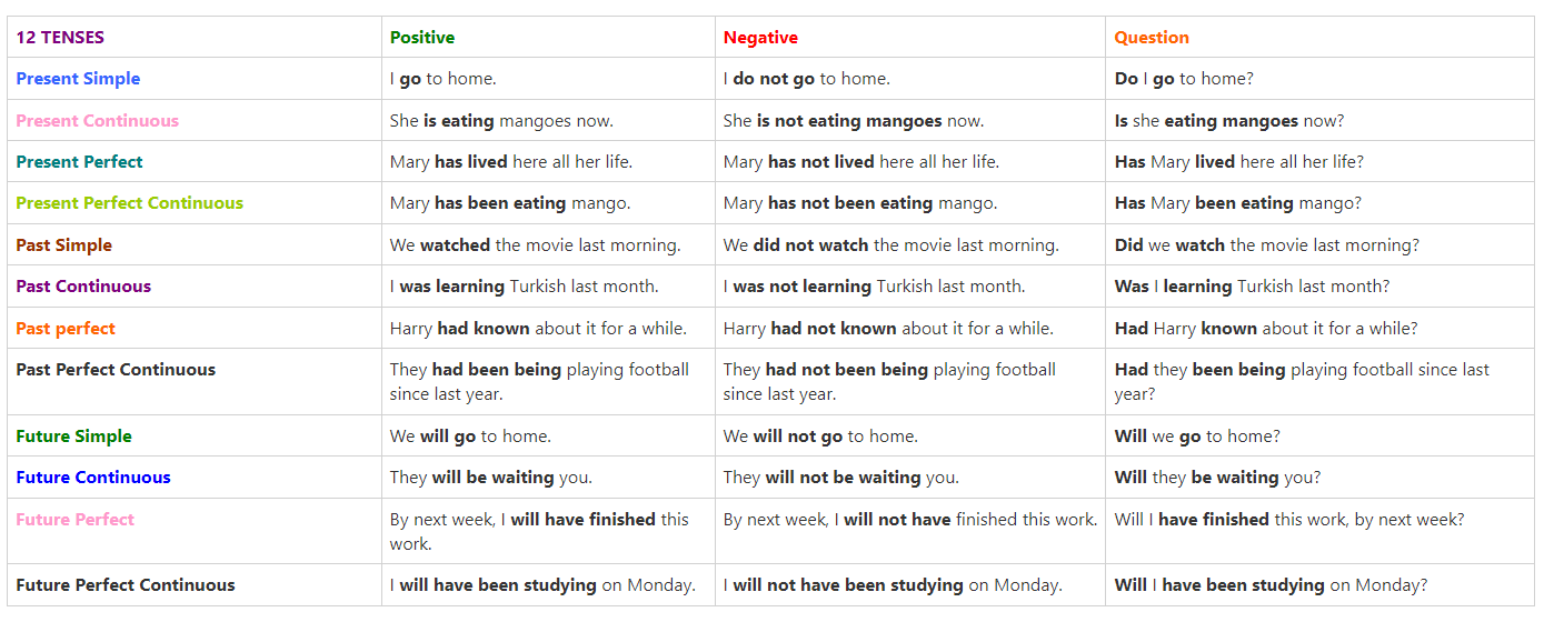 Each tense has its own rules and usage, so it’s important to familiarize yourself with them. From simple present to future perfect continuous, each tense serves a specific purpose in English grammar. Let’s explore the 12 tenses in more detail: