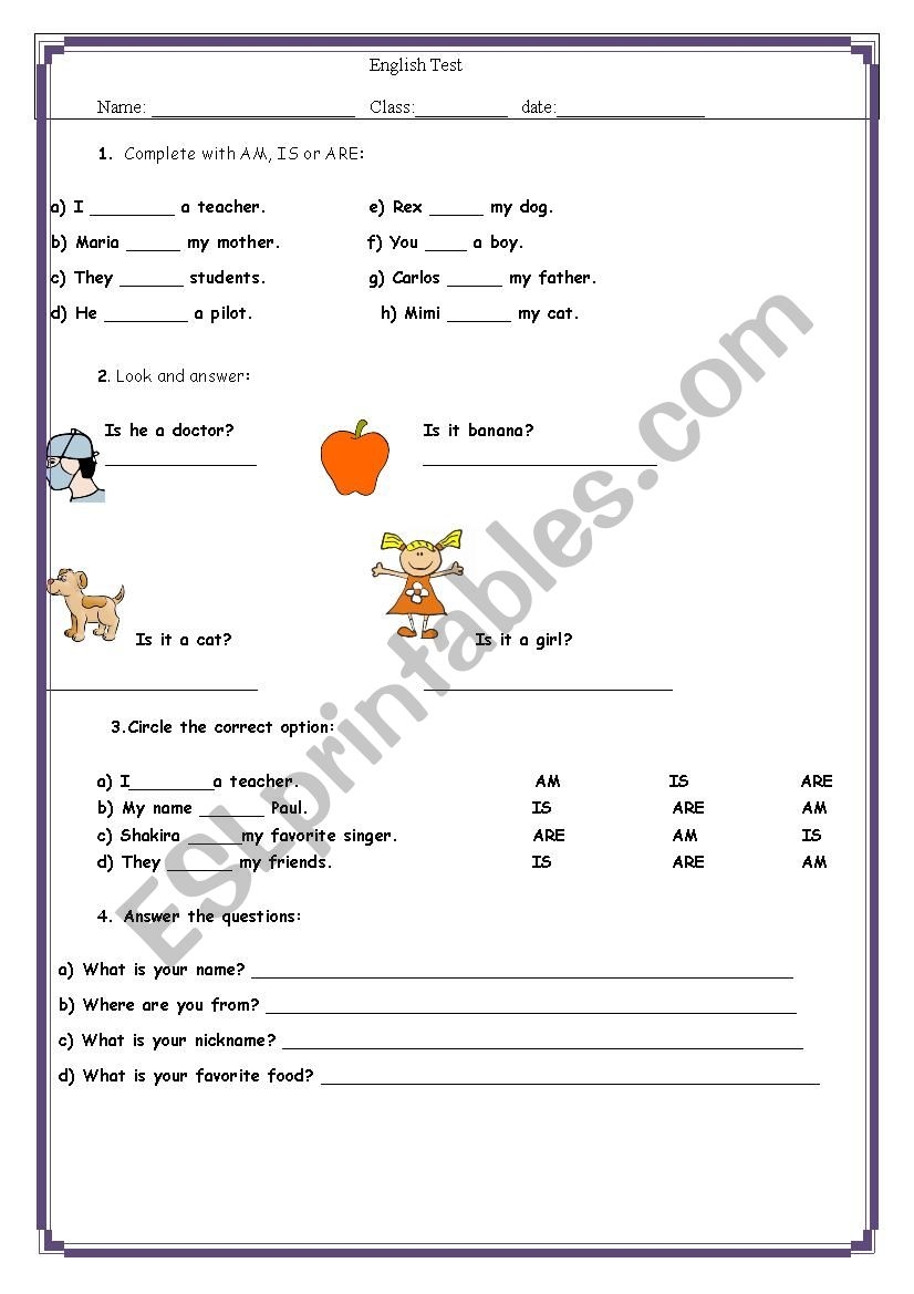 - What is the correct form of the verb “to be” in the present tense?
