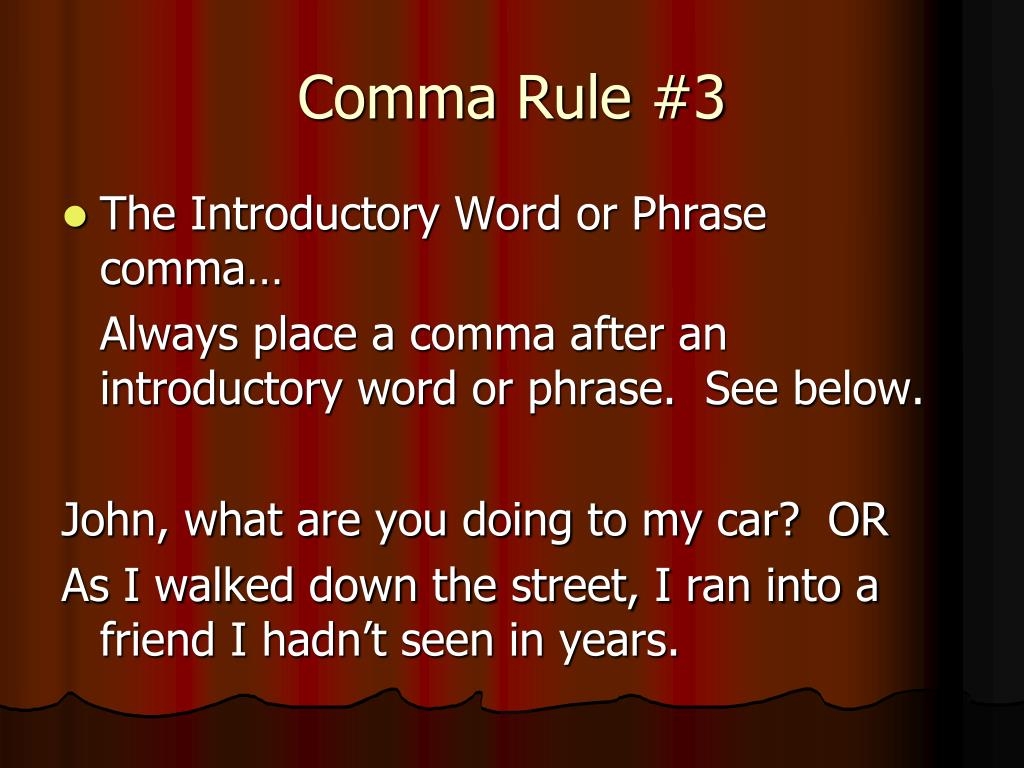 3. Use a comma after an introductory phrase or clause