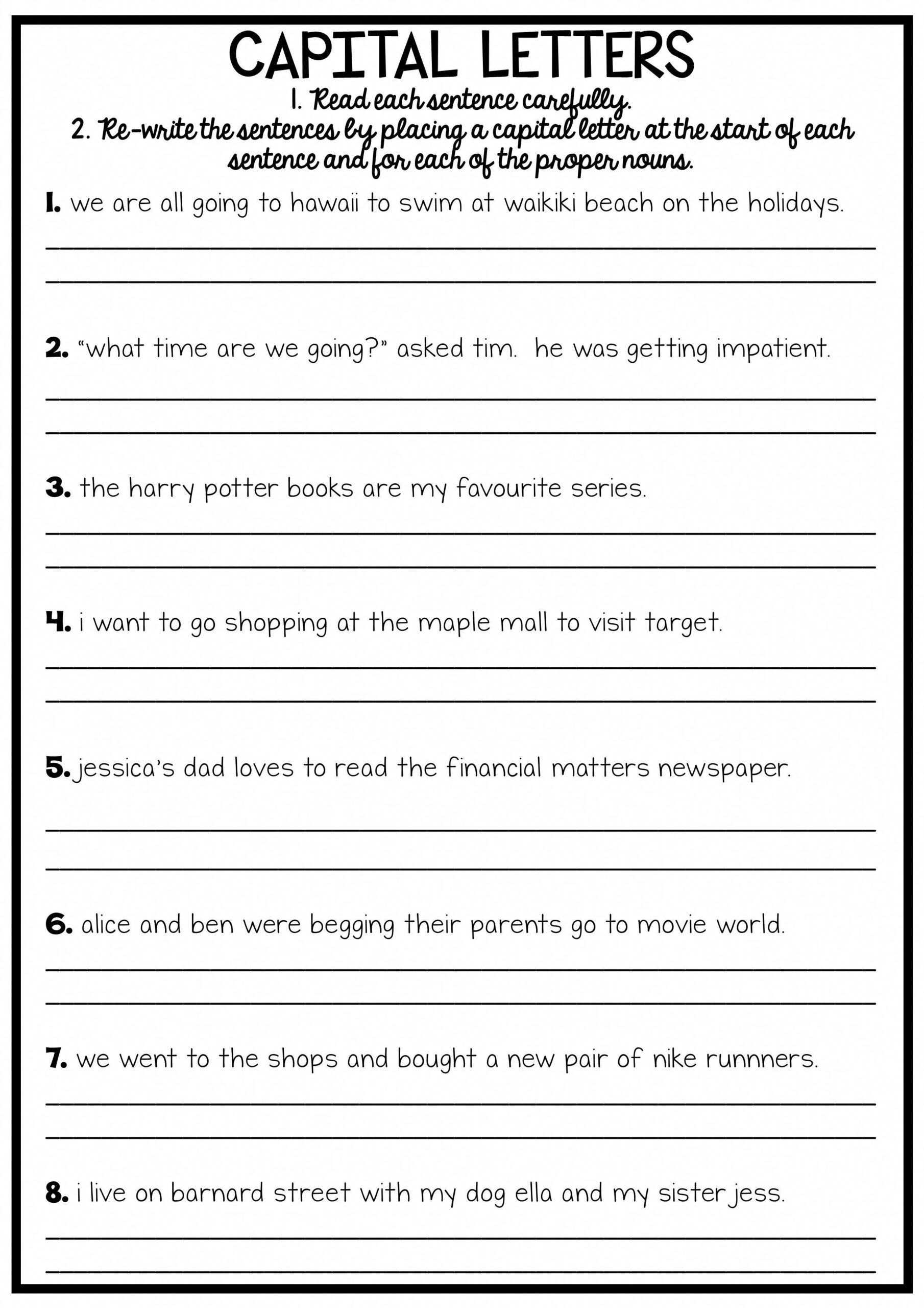 Another type of worksheet may focus on sentence structure, such as subject-verb agreement, punctuation, and capitalization. By practicing these skills, students can improve the clarity and coherence of their writing. They also learn how to properly construct sentences and paragraphs, which is essential for effective communication.
