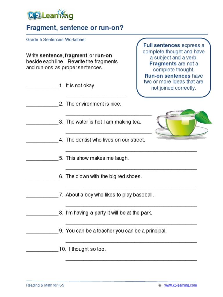 As children progress through elementary school, their language skills continue to develop and improve. In 5th grade, students are expected to have a solid understanding of grammar and sentence structure. One common area of focus for 5th graders is learning to identify and correct sentence fragments. Sentence fragment worksheets can be a valuable tool in helping students master this concept.