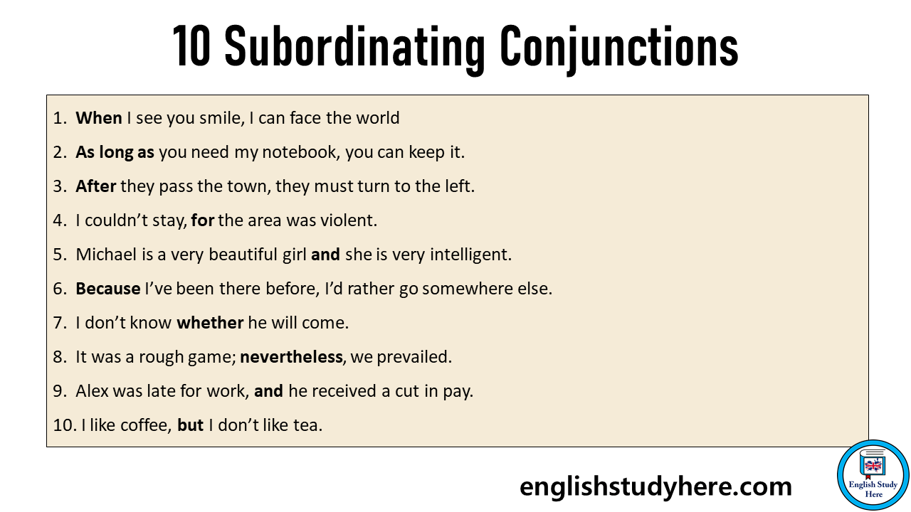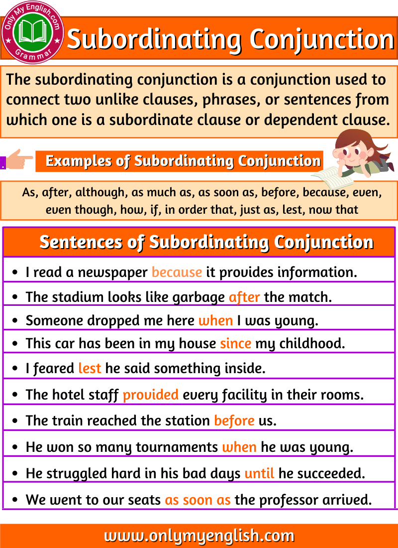 Examples of Subordinating Conjunctions: