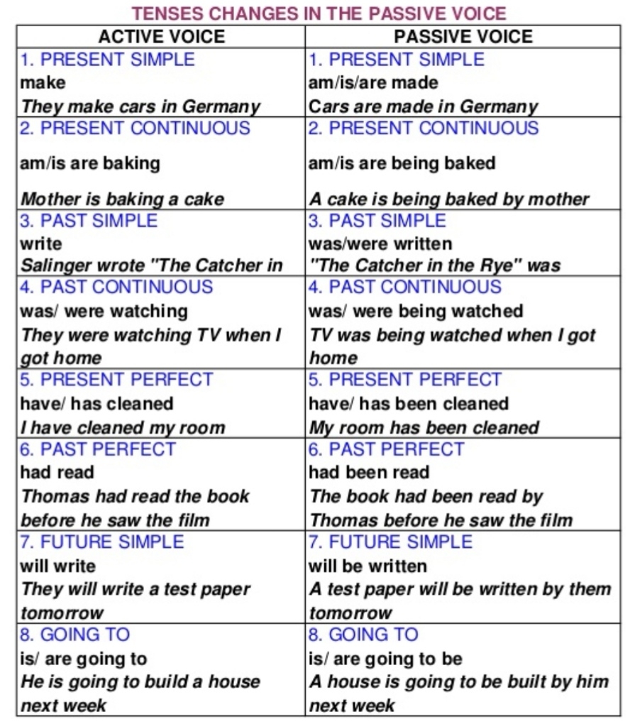 Active Passive Voice Chart Active Voice Passive Voice 41 OFF