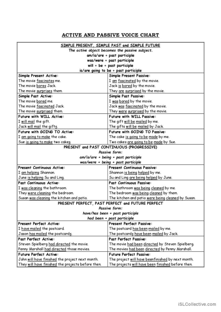 Active Passive Voice Chart