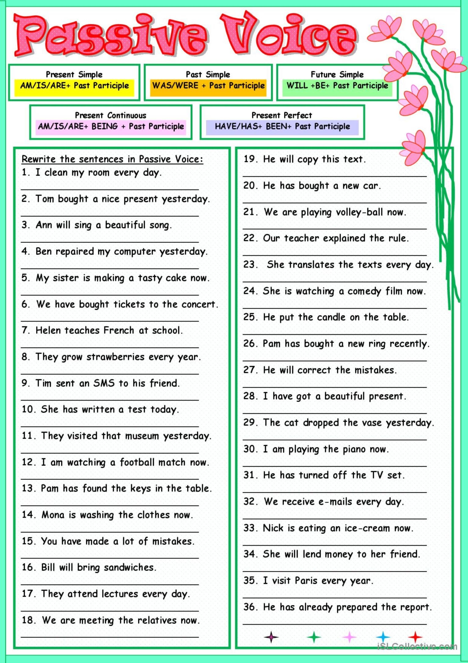 PASSIVE VOICE English ESL Worksheets Pdf Doc