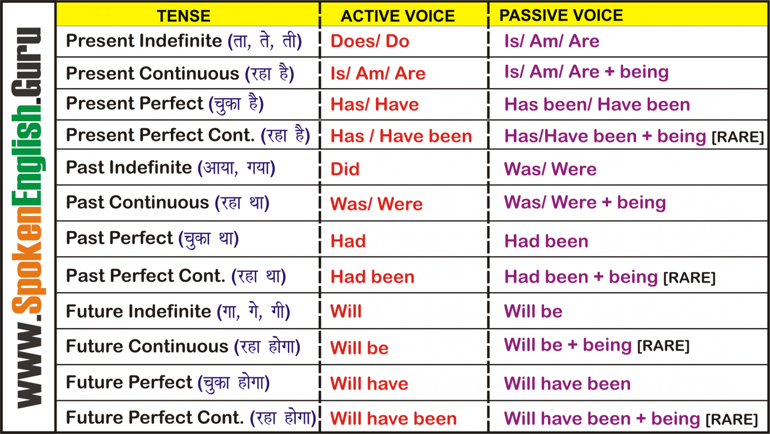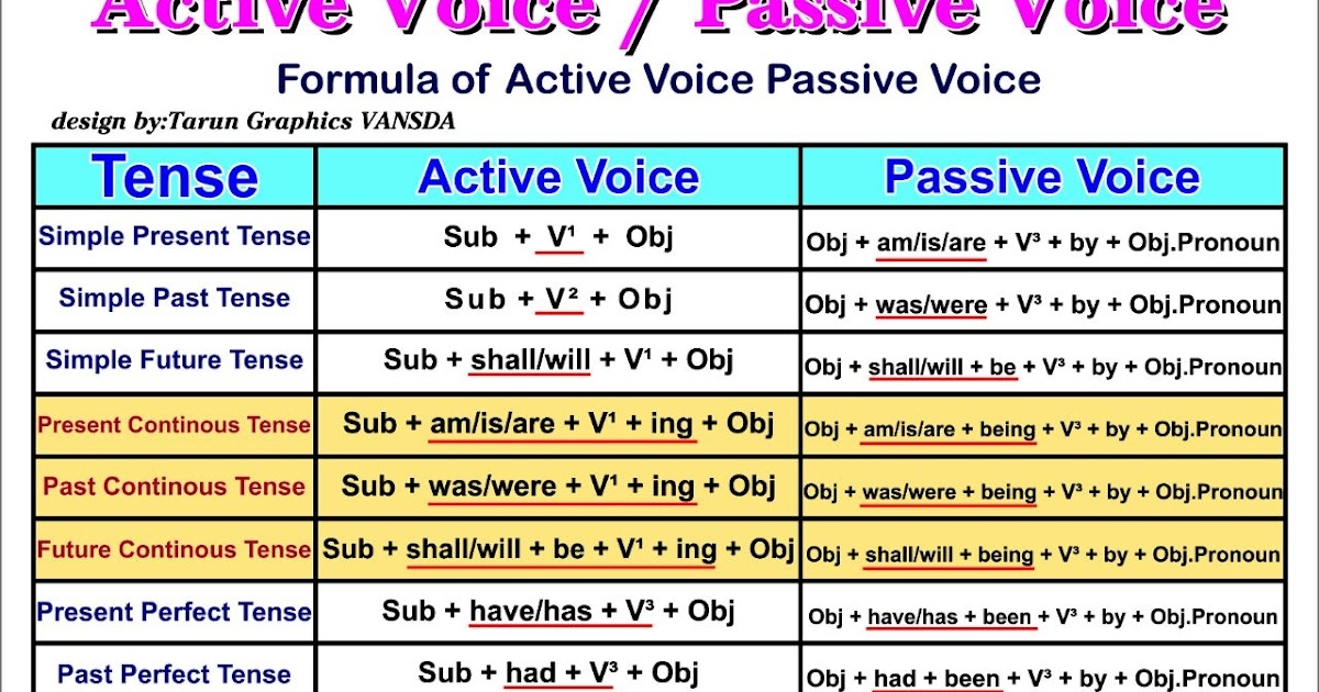 Active Voice and Passive Voice Rules Chart