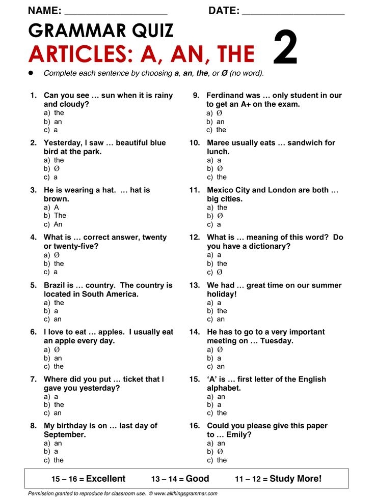 Article in Grammar Examples