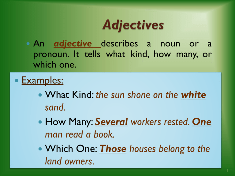 Articles are a type of adjective that modify nouns by providing more information about them. There are three articles in English: “a,” “an,” and “the.” These articles help specify whether the noun is specific or general. Let’s explore some examples of articles adjectives in sentences.