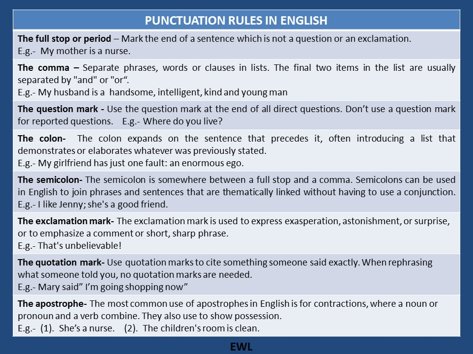 Here are some fundamental punctuation rules in English that every writer should know:
