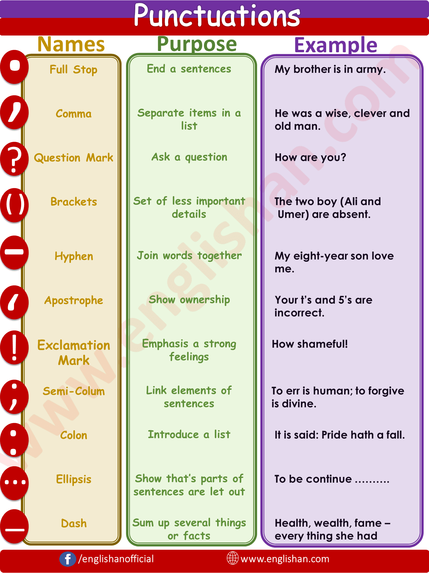 The apostrophe is used to indicate possession (e.g., Mary’s book) and contraction (e.g., can’t for cannot). Make sure to place the apostrophe correctly to avoid grammatical errors.