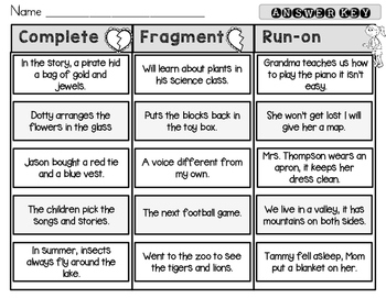 Complete Fragment Run On Sentence Sort Set 2 By Rock Paper Scissors