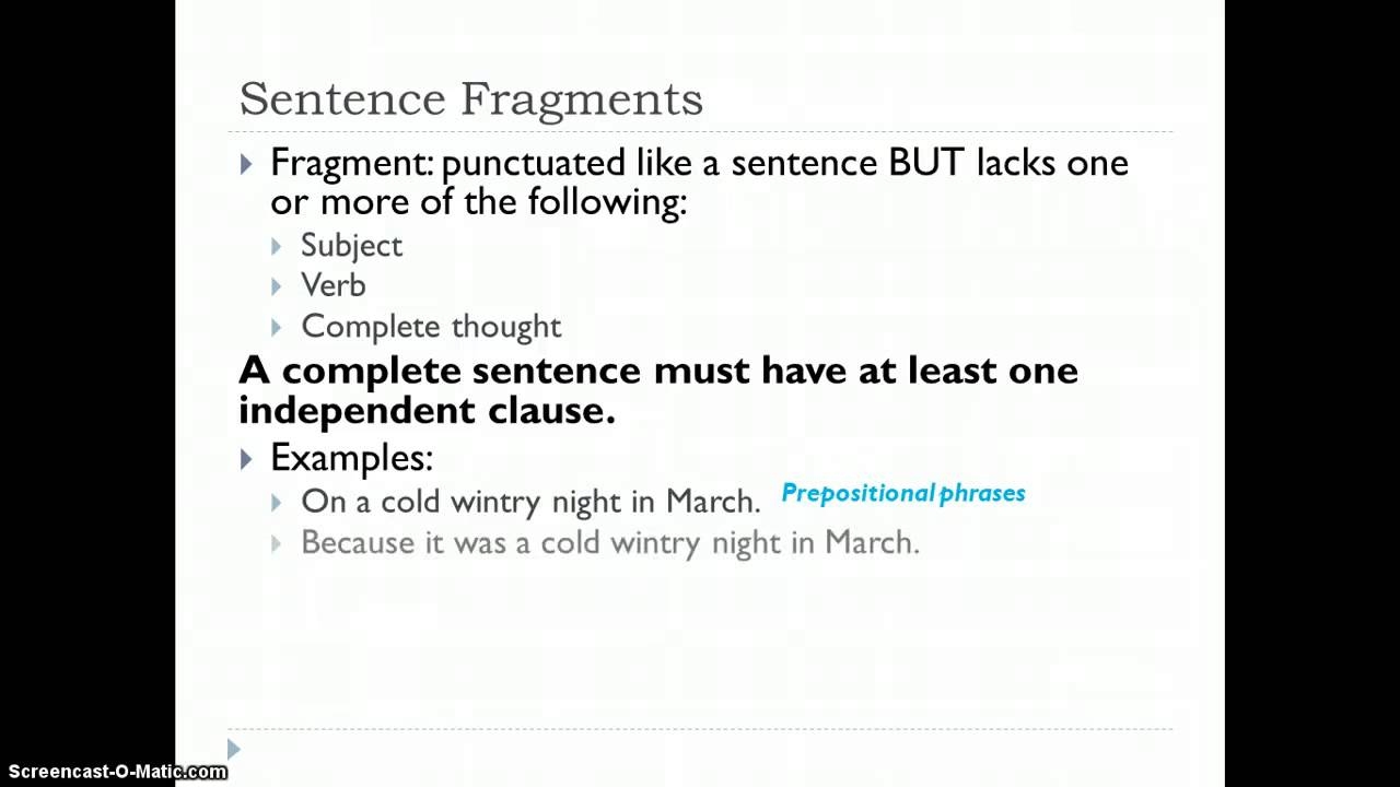 One common type of sentence fragment is the dependent clause that is not connected to an independent clause. For example, “Although she was tired.” This fragment lacks a main clause to make it a complete sentence. To correct this, you can add the missing independent clause, such as “Although she was tired, she continued working on her project.”
