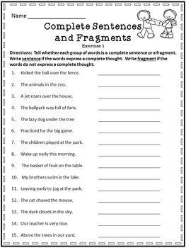 Download and Print complete sentence fragment run on Listed below