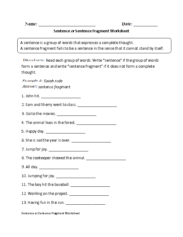 Sentence Or Fragment Worksheet