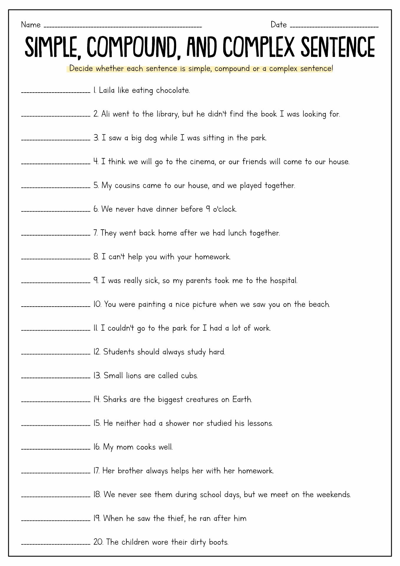 Additionally, grade 5 worksheets on compound and complex sentences often include activities that require students to punctuate these sentences correctly. This helps students to understand the importance of proper punctuation in conveying their intended meaning. By practicing with these worksheets, students can become more confident in using compound and complex sentences in their own writing.