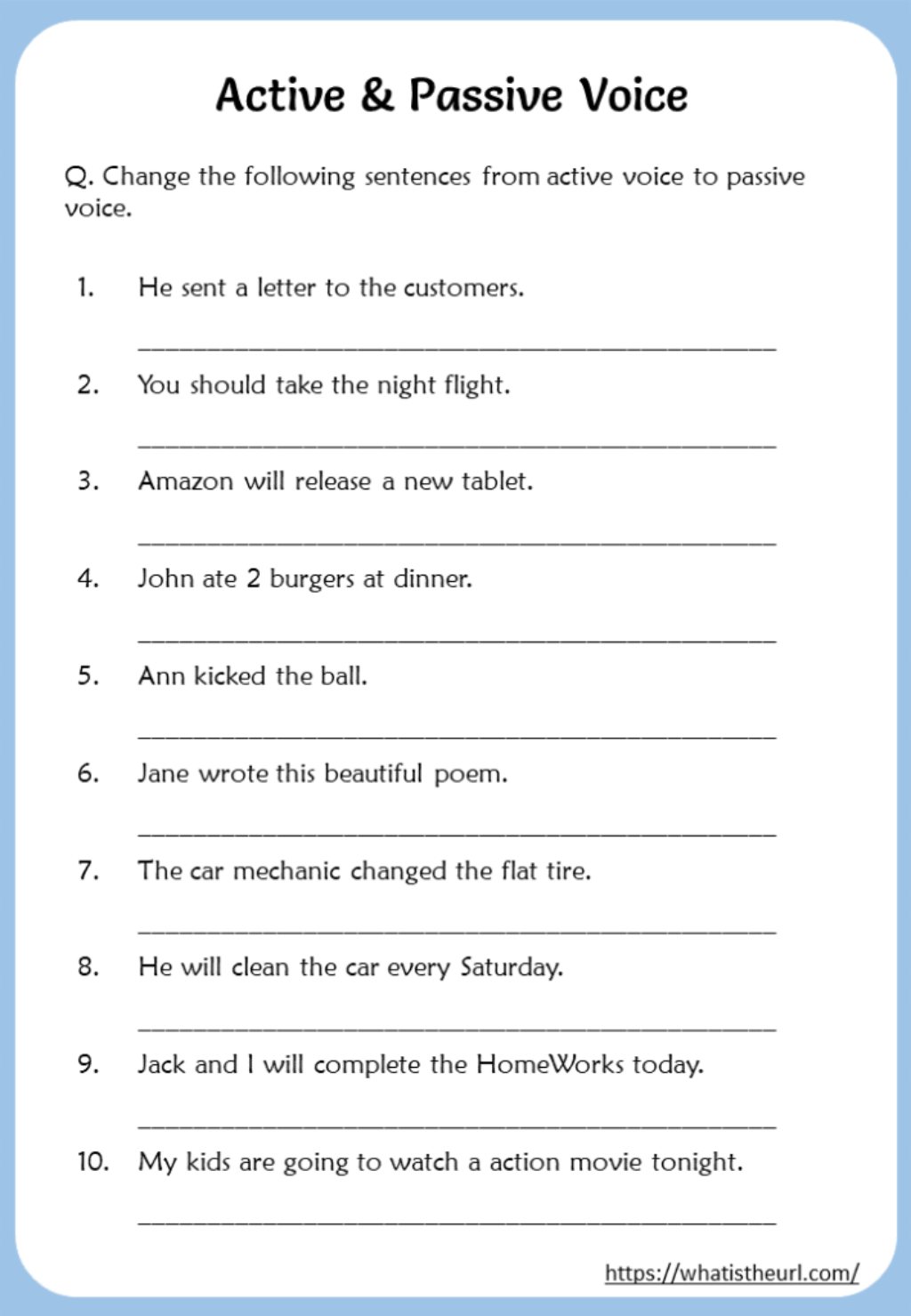 Convert Active Voice Into Passive Voice Worksheets Your Home Teacher