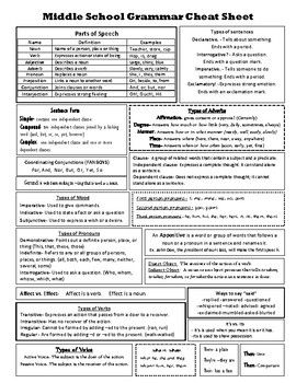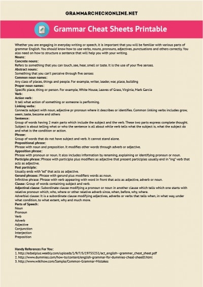 English Grammar Cheat Sheet Printable