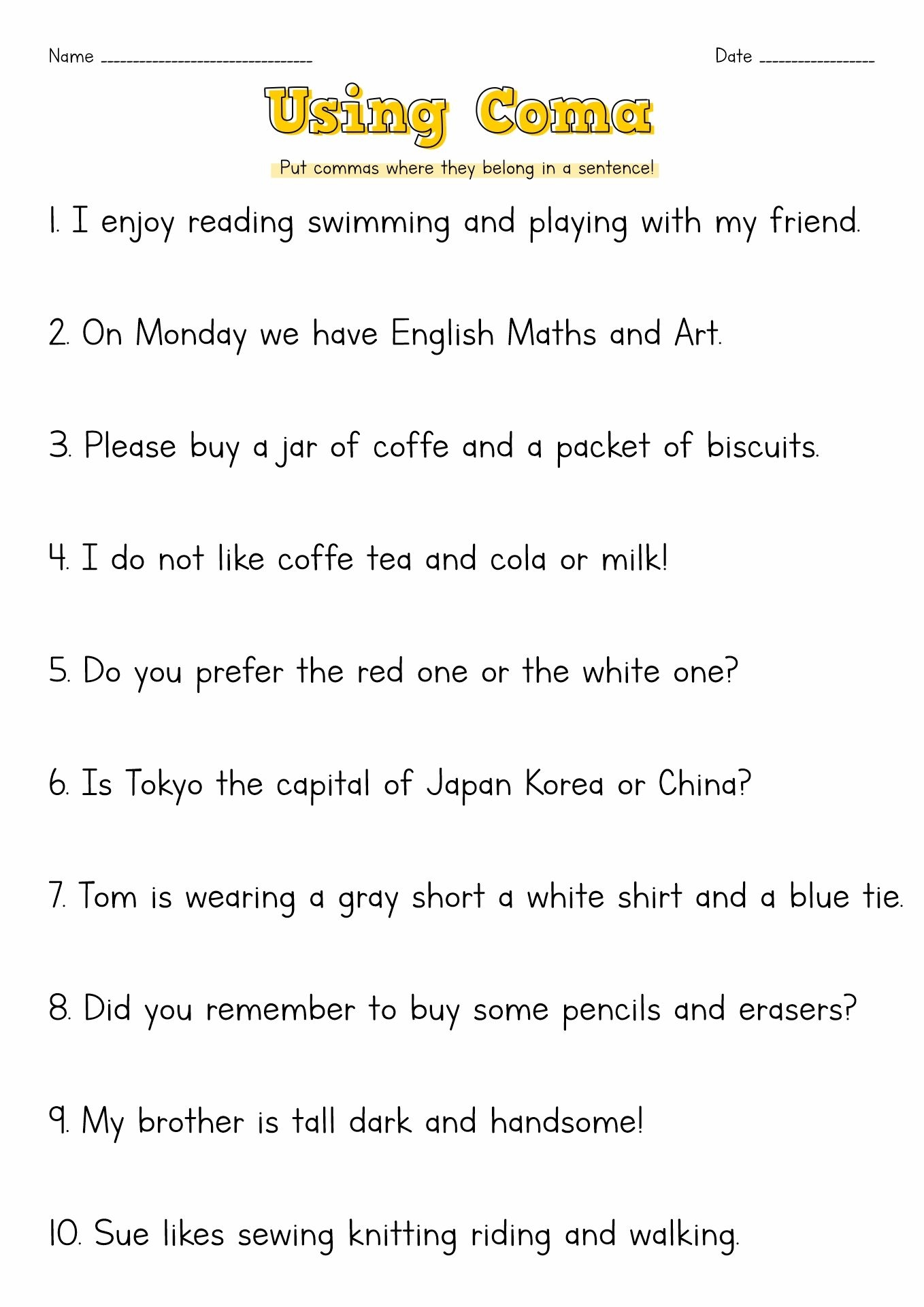 English Grammar Comma Rules