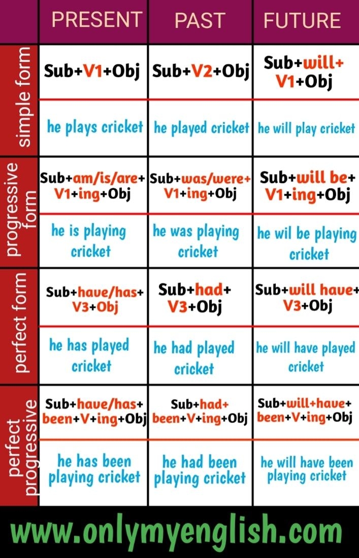 English Grammar Tenses Chart