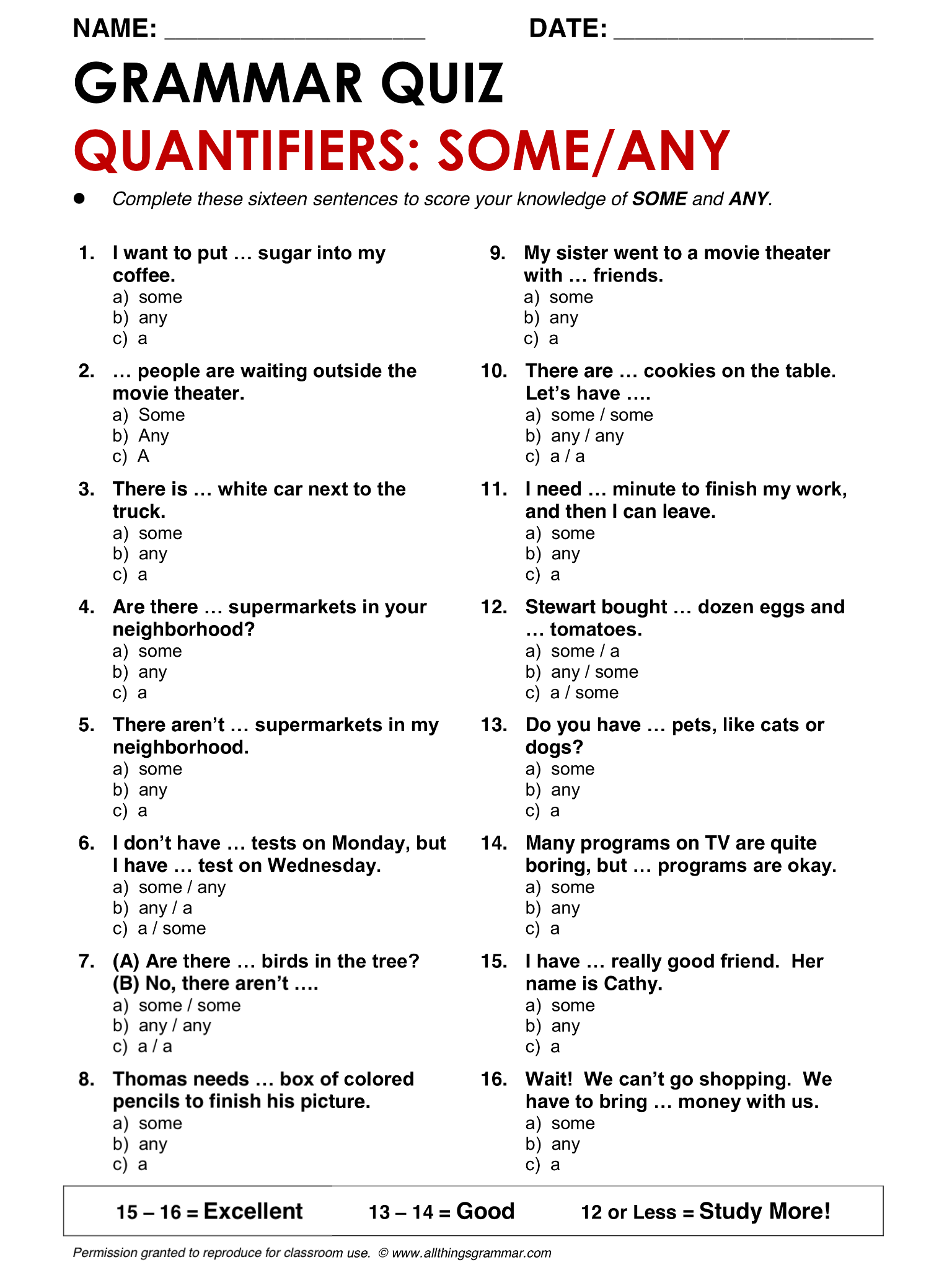 English Grammar Tests With Answers
