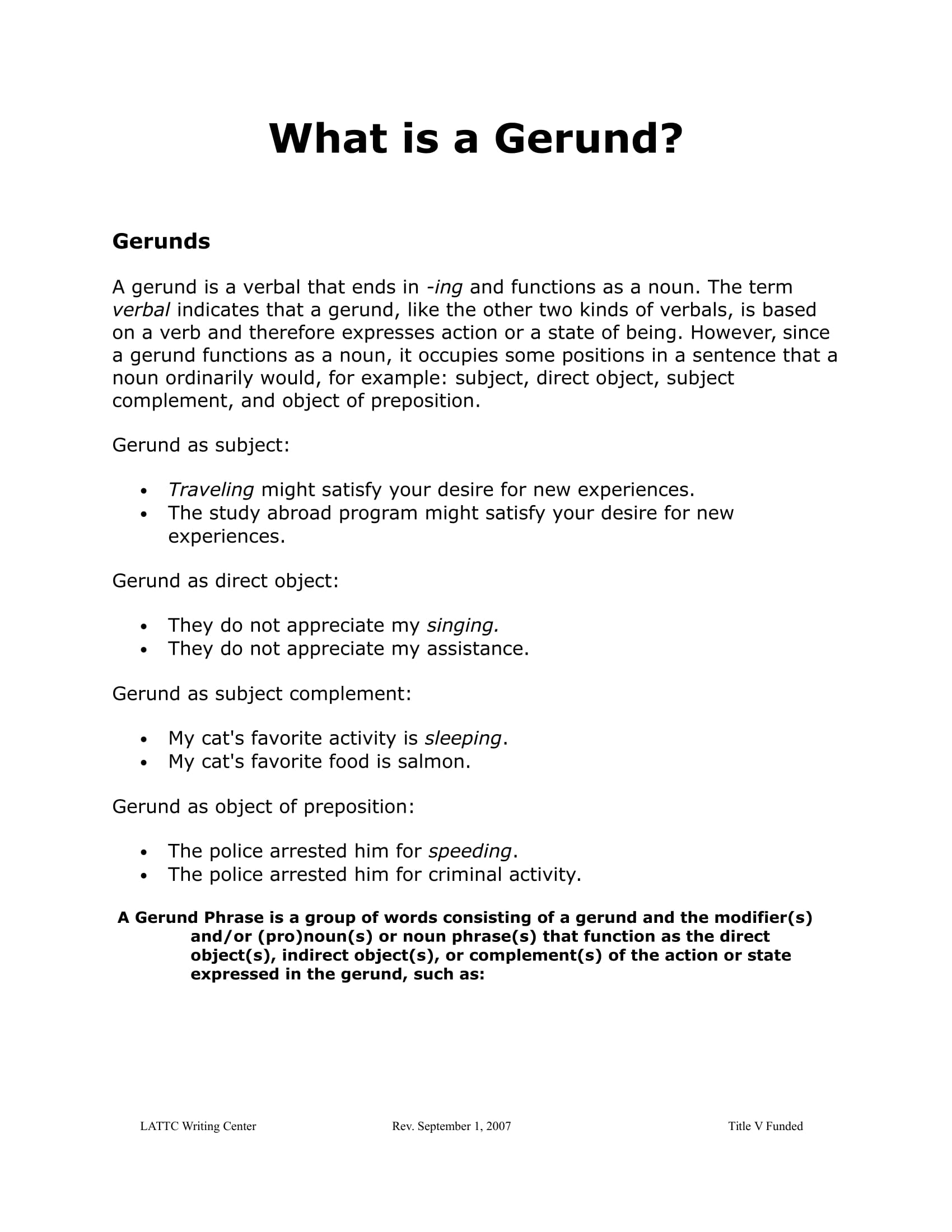 Example of a Gerund