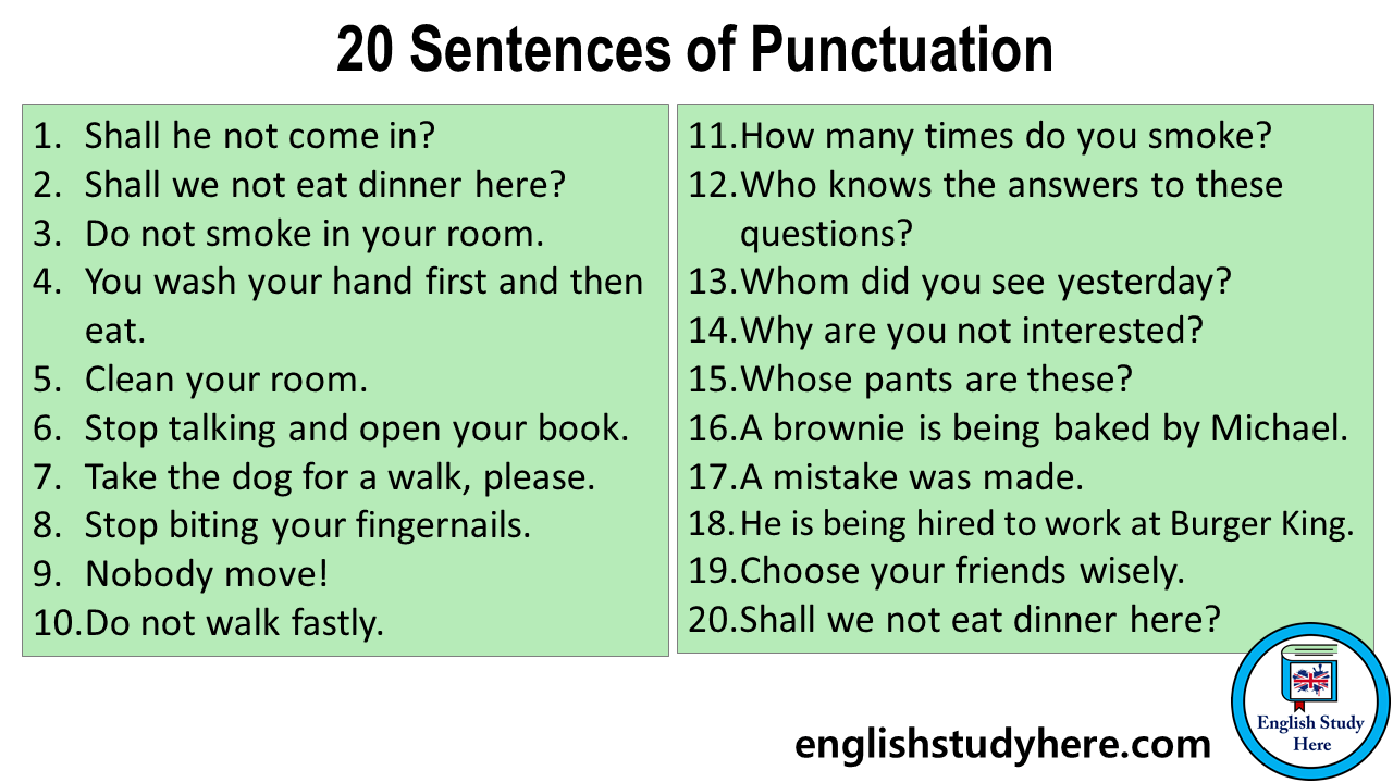 Examples of Sentences with Punctuation