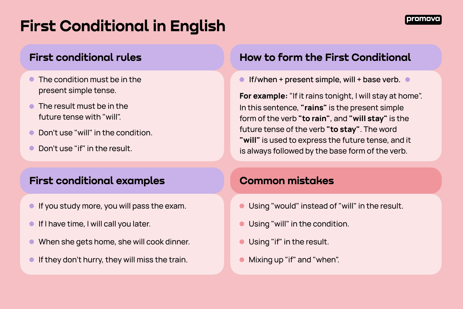 First conditionals are used to express possible outcomes in the future, based on a specific condition being met in the present. They are typically used to talk about things that are likely to happen. Understanding how to use first conditionals can help you express your thoughts and ideas clearly in English.