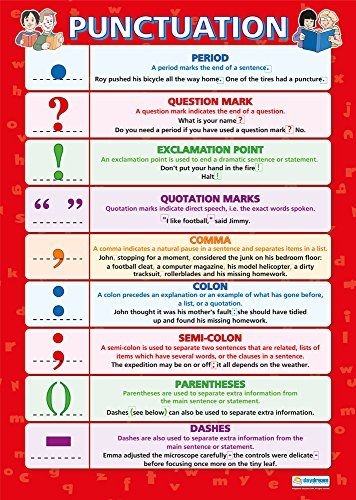 Our punctuation rules chart covers all the essential punctuation marks, including commas, periods, semicolons, colons, quotation marks, and more. Each rule is clearly explained and accompanied by examples to help you understand how to use each punctuation mark correctly in your writing. This chart is perfect for hanging on your wall or keeping in your notebook for easy reference whenever you need it.