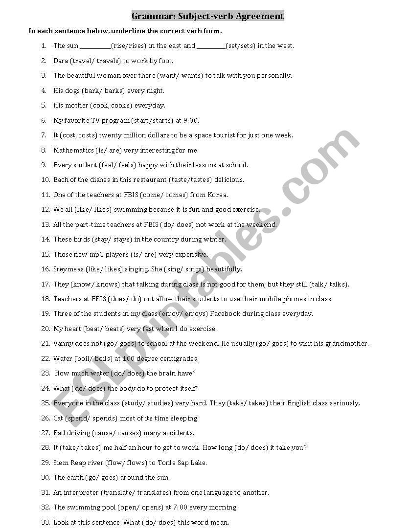 Mastering Subject Verb Agreement Worksheets And Exercises For Precision
