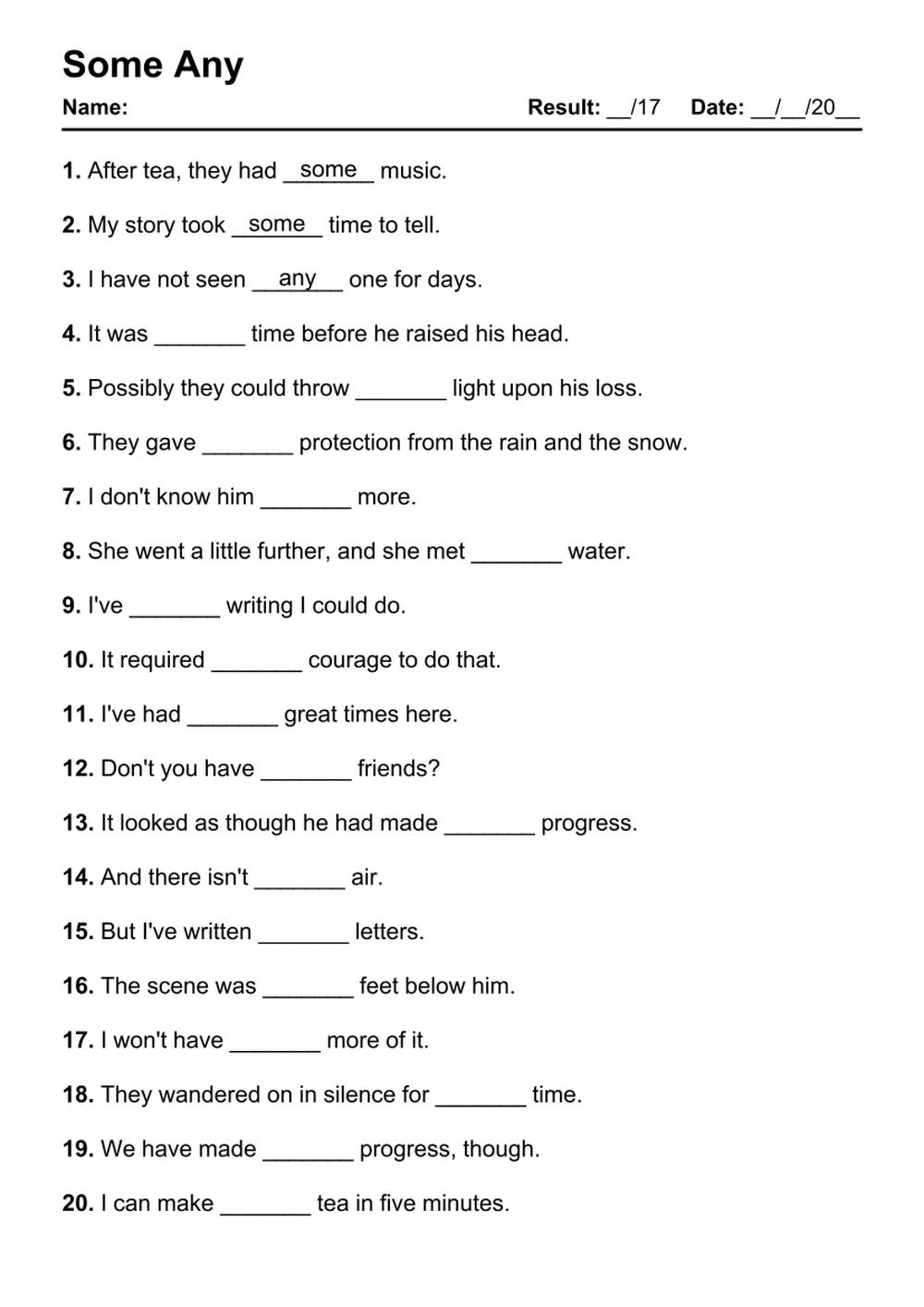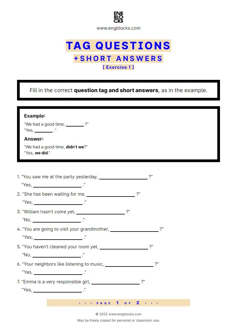 Grammar Exercise with Answers