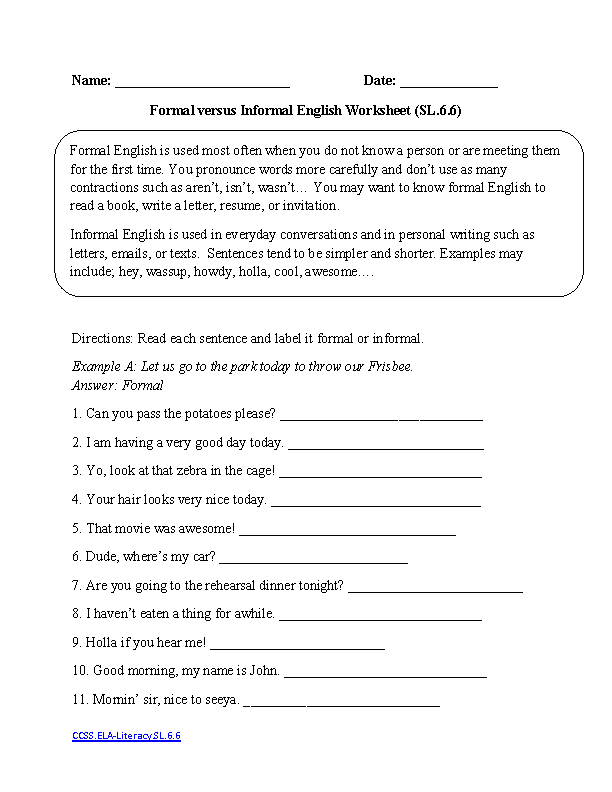 Grammar For 6th Graders Worksheets