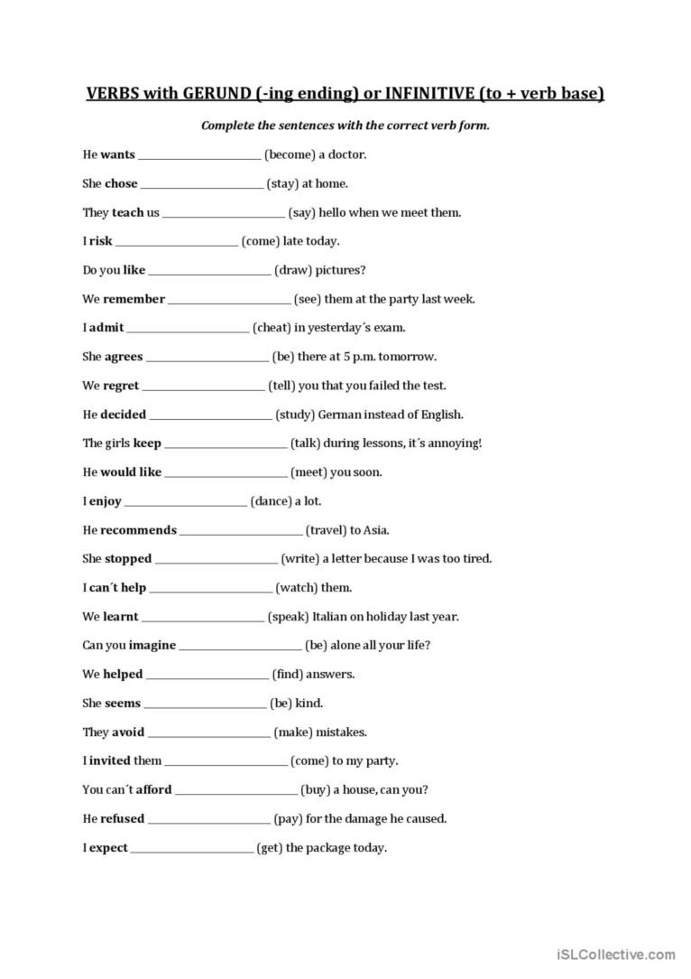 In conclusion, grammar gerund and infinitive exercises are valuable tools for honing your English language skills. By mastering the usage of gerunds and infinitives, you can express yourself more clearly and confidently in both written and spoken communication. Practice regularly and don’t be afraid to make mistakes, as they are essential for learning and growth.