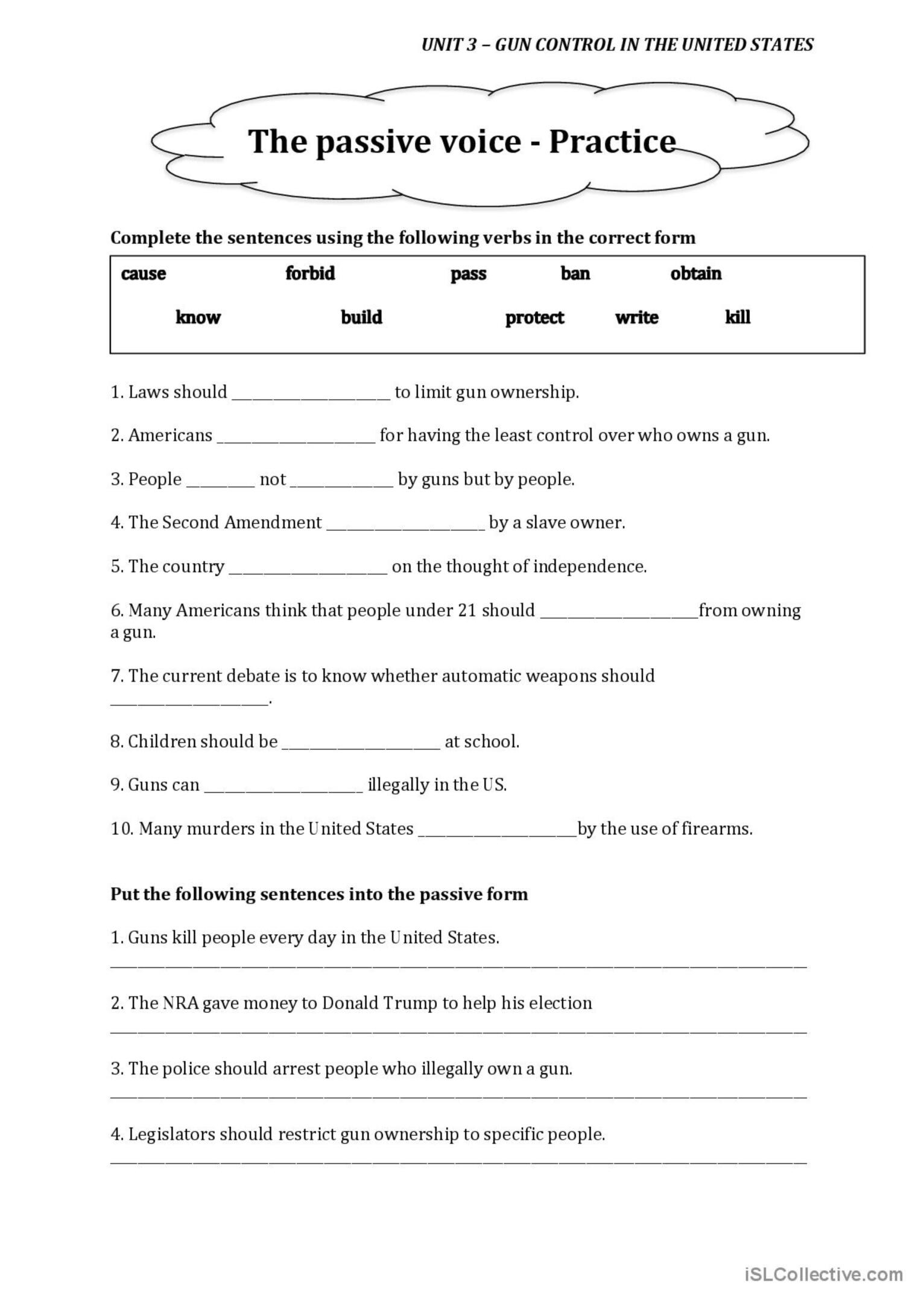 1. Rewrite the following sentences in the passive voice: