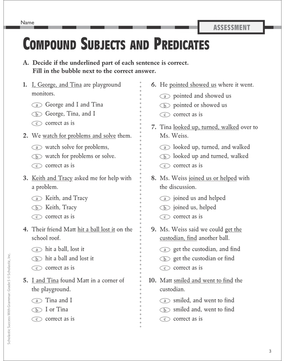 Grammar Subjects and Predicates Worksheet