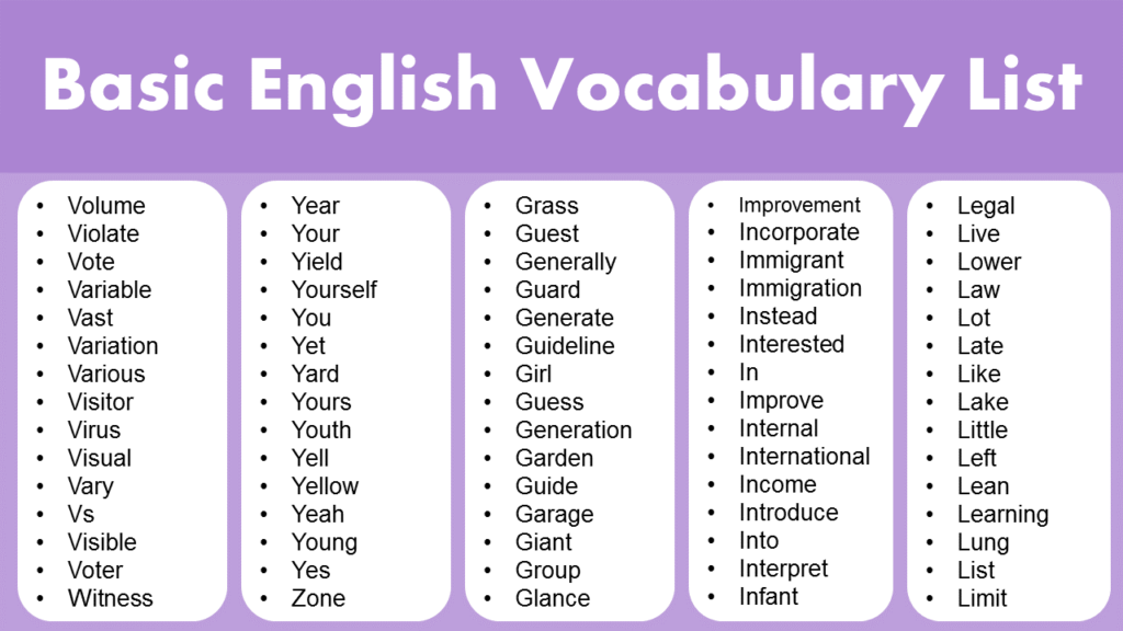 Basic English Vocabulary Words Vocabulary Point 58 OFF