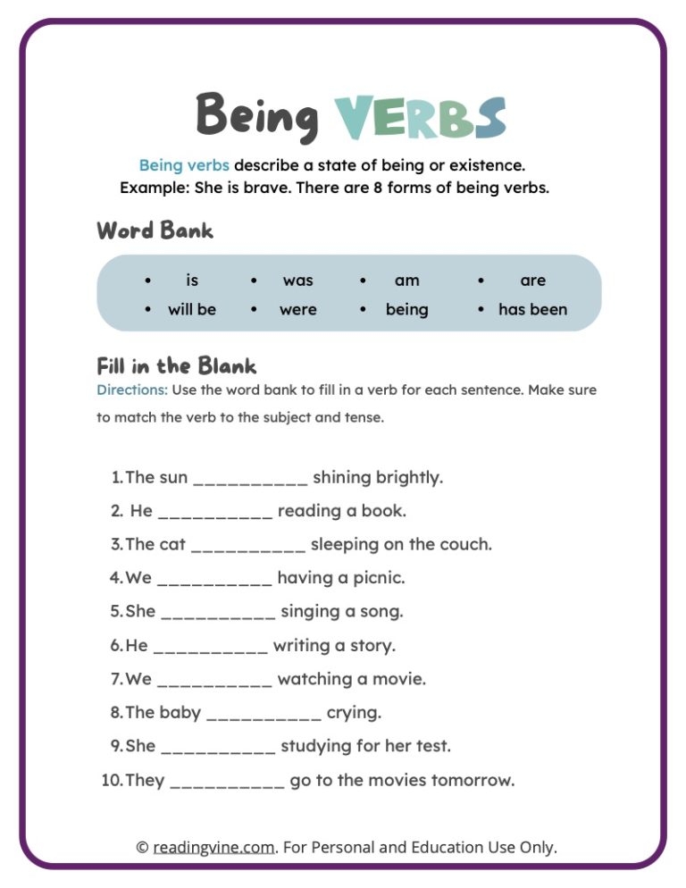 Being verbs can also be used in progressive tenses to indicate ongoing actions or states. For example, “He is running” or “She was studying.” In these sentences, the being verbs “is” and “was” are used to show the continuous nature of the actions.