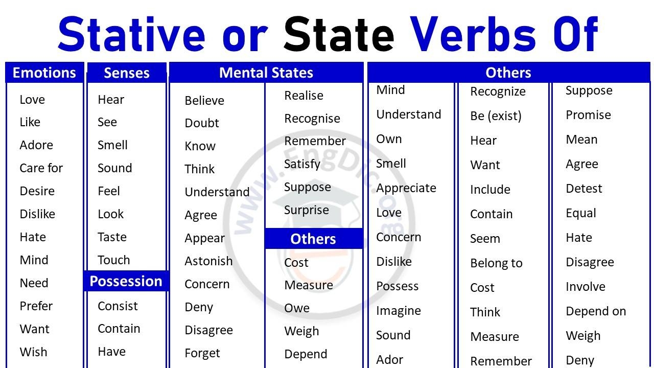 In English grammar, a state of being verb (also known as a linking verb) is a verb that describes a state of existence or the condition of the subject. These verbs do not show action but rather connect the subject to a subject complement, which describes or renames the subject. Understanding state of being verbs is essential for constructing meaningful sentences and conveying information effectively.