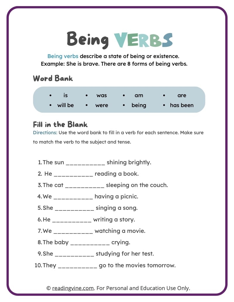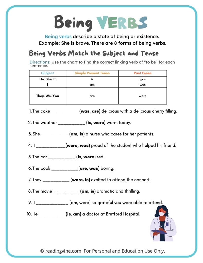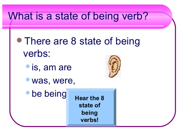 One of the most common state of being verbs is “is,” which is used to connect the subject of a sentence to a description or a condition. For example, “She is happy” uses “is” to link the subject “She” to the adjective “happy.” Similarly, “I am a teacher” uses “am” to connect the subject “I” to the noun “teacher.”
