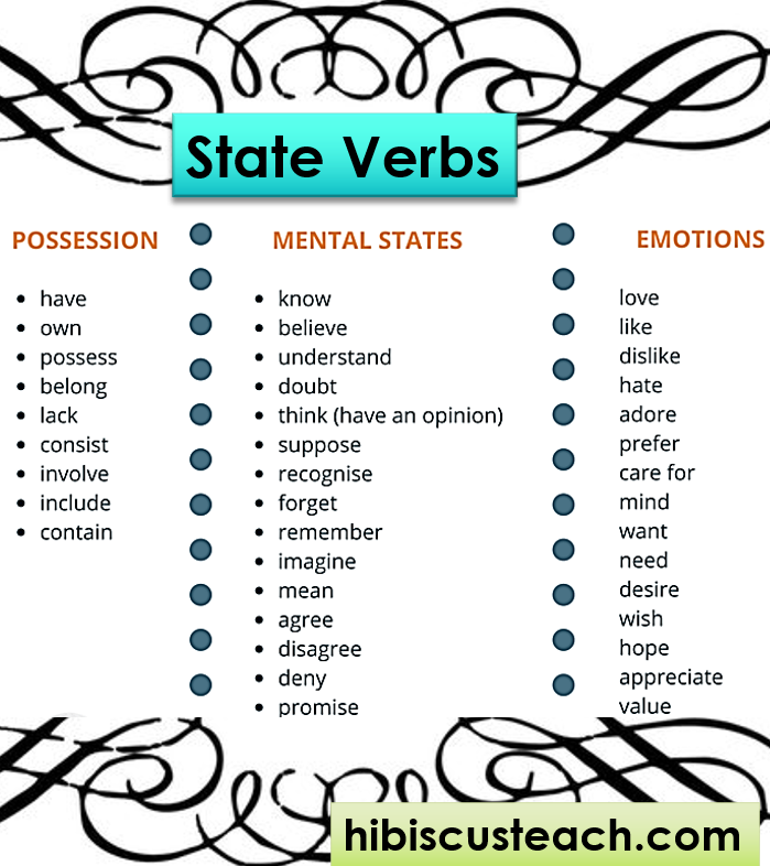List of State of Being Verbs: