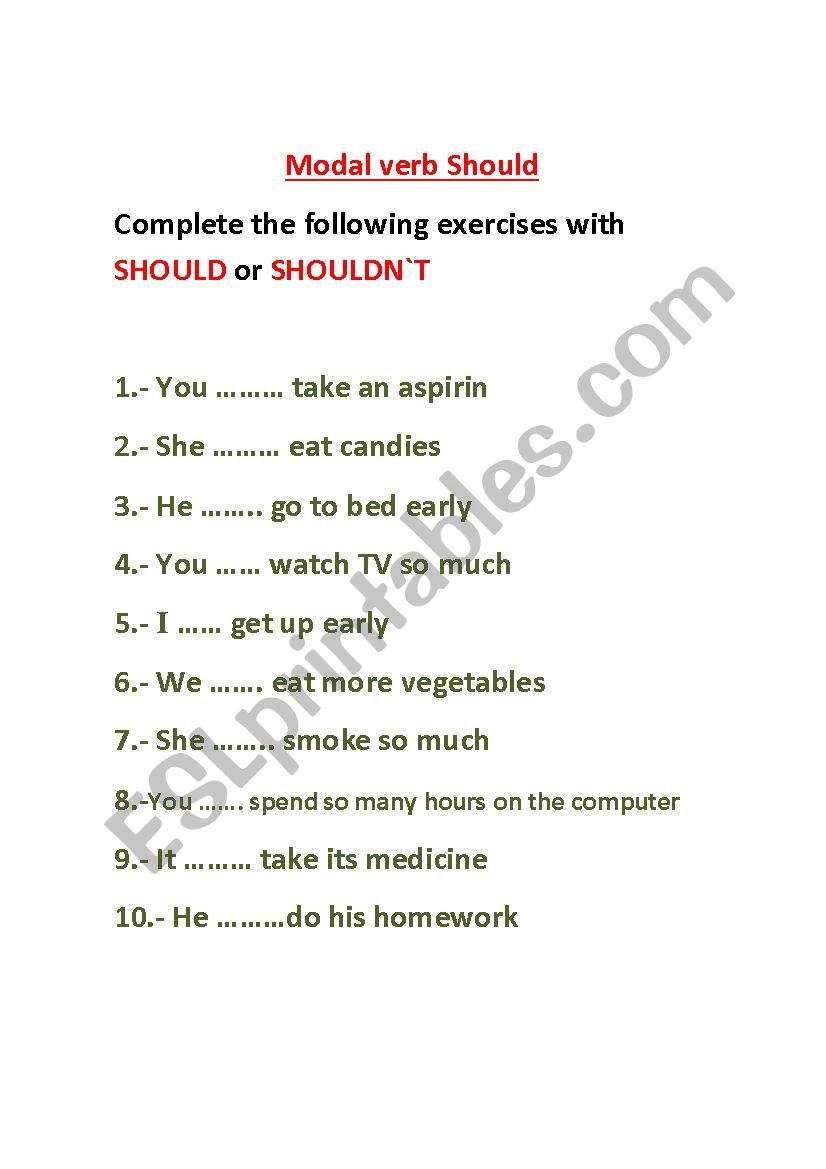 One common type of exercise found in modal verb worksheets is asking students to complete sentences with the correct modal verb. For example, students may be given a sentence like, “You _____ bring an umbrella in case it rains.” They would then need to choose the appropriate modal verb, in this case, ‘should,’ to complete the sentence correctly.