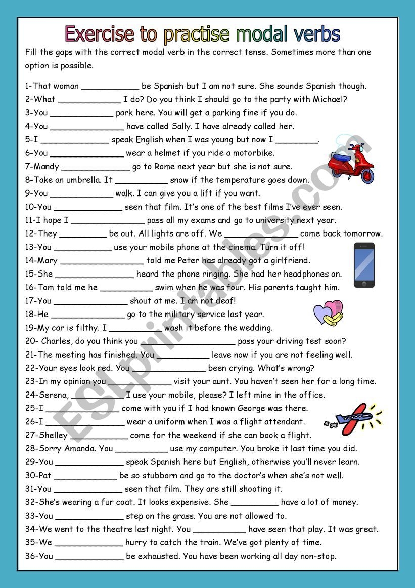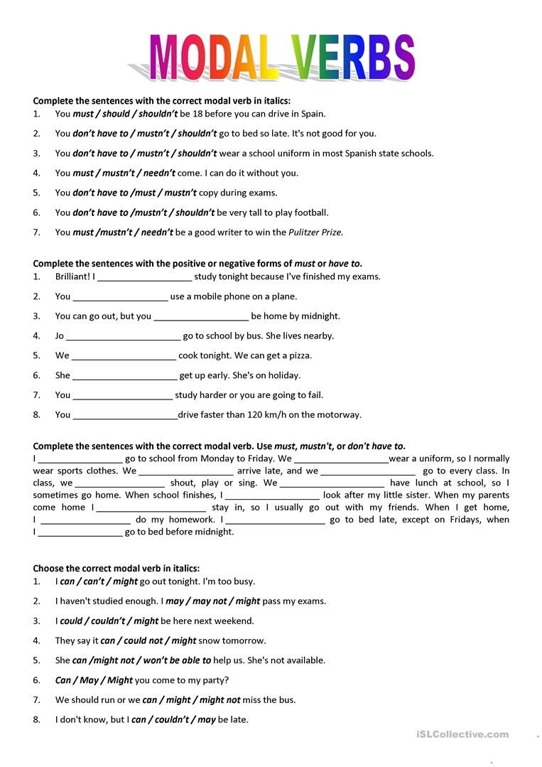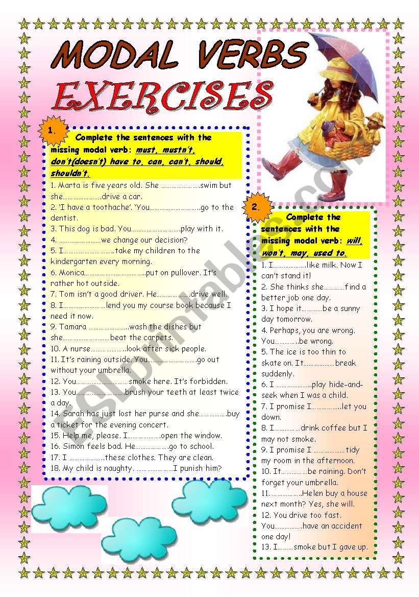 Examples of Modal Verbs Exercises: