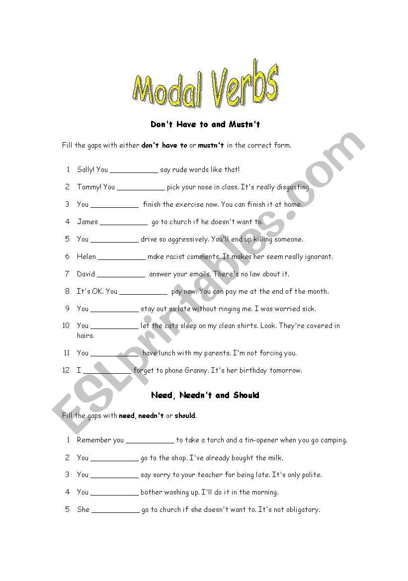Modal Verbs Exercises ESL Worksheet By Tikaki