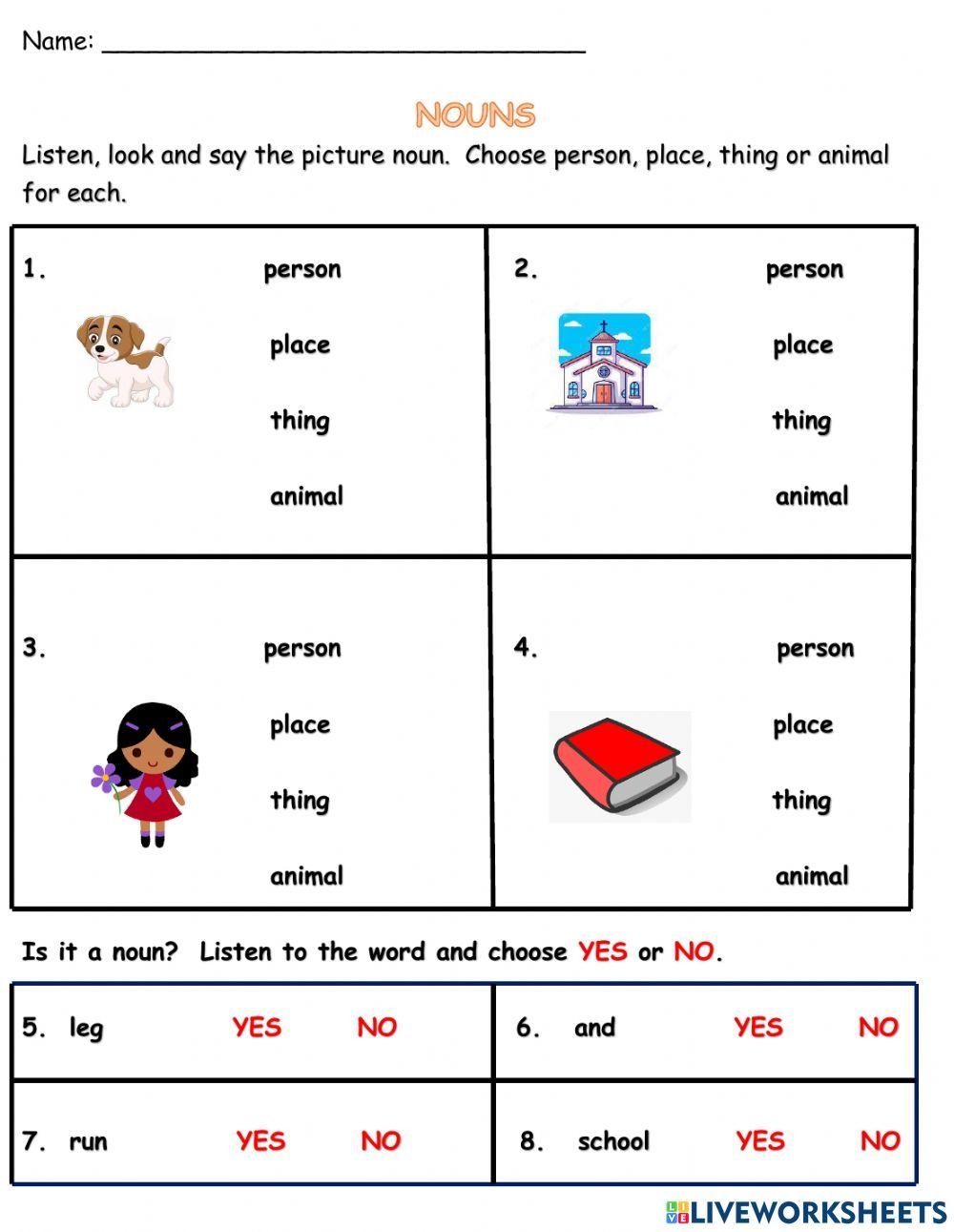 A noun identification worksheet is a valuable tool for students to practice recognizing and categorizing nouns in sentences. These worksheets typically contain a series of sentences where students are required to identify the nouns present. This can include common nouns, proper nouns, singular nouns, plural nouns, and more. By completing these exercises, students can develop a better understanding of how nouns function in sentences.