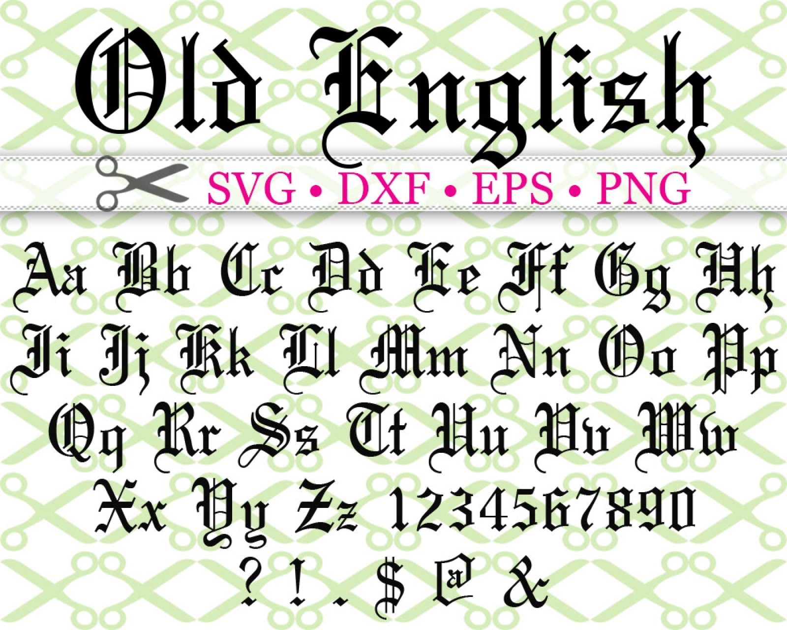 Old English script, also known as blackletter or Gothic script, is a type of script that was used in medieval manuscripts and inscriptions. It has a distinct and intricate appearance that is both elegant and historic.