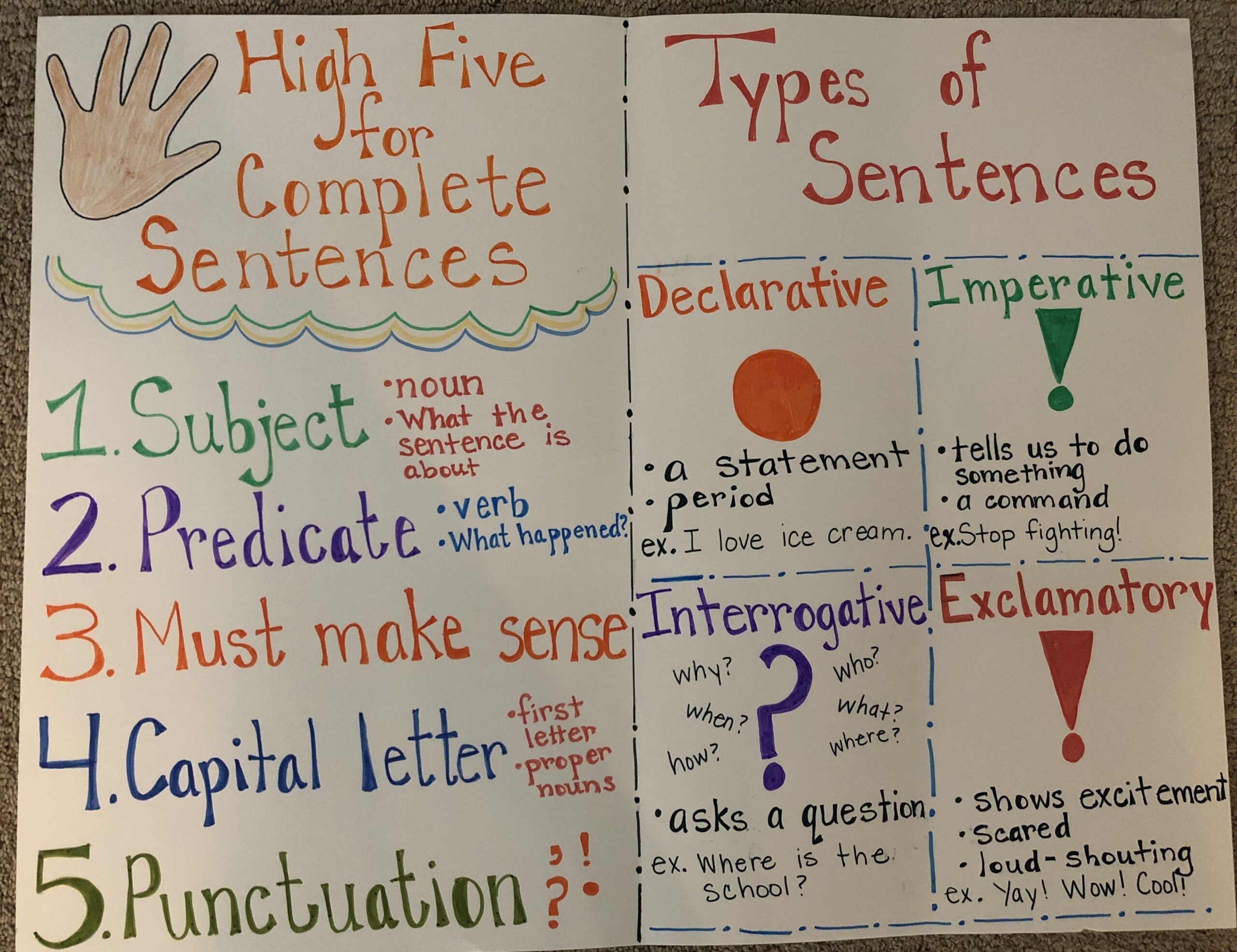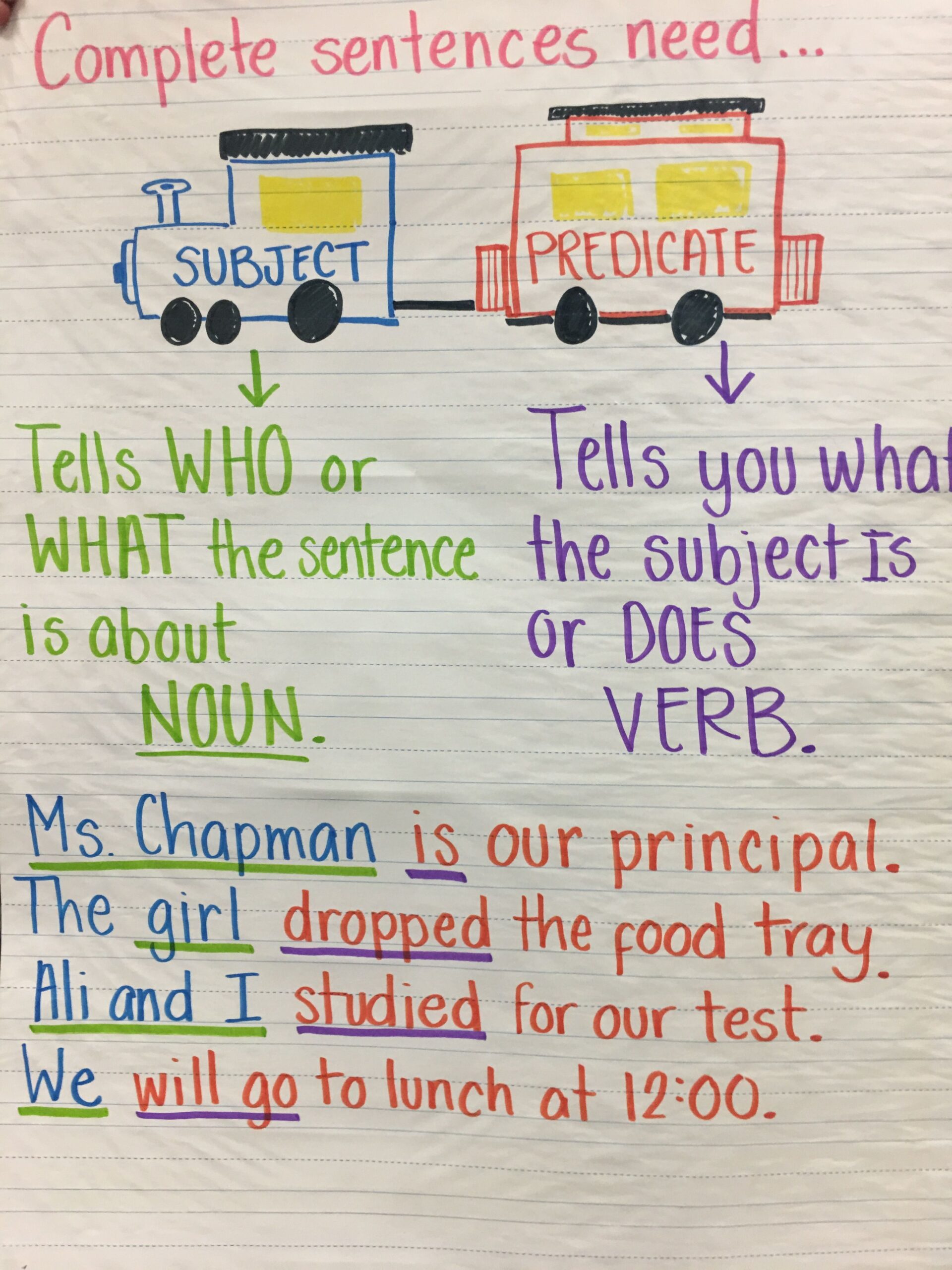 Parts of a Sentence Chart