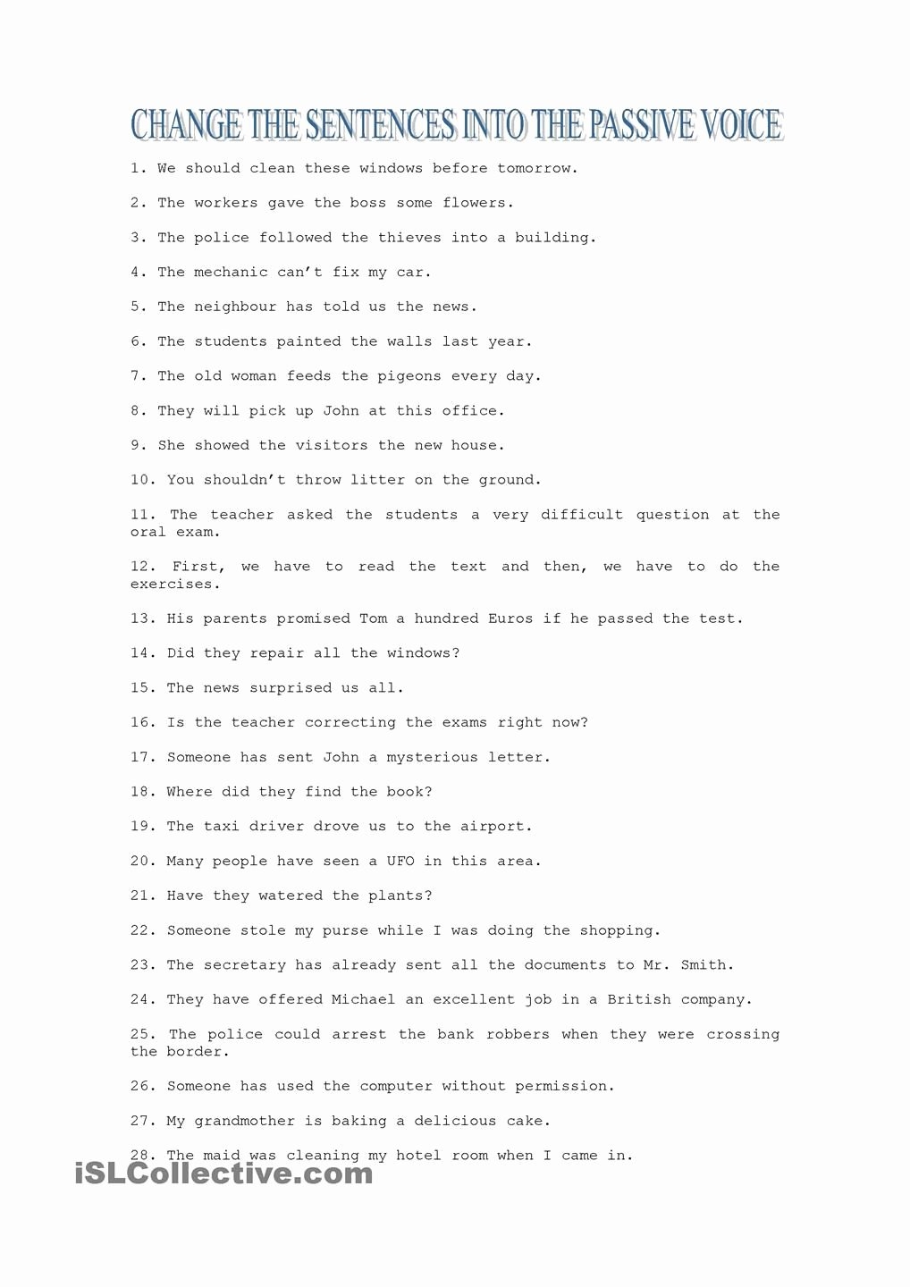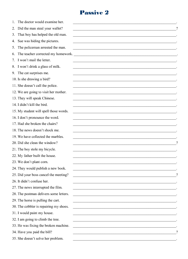 2. Rewrite the following sentences from active voice to passive voice: