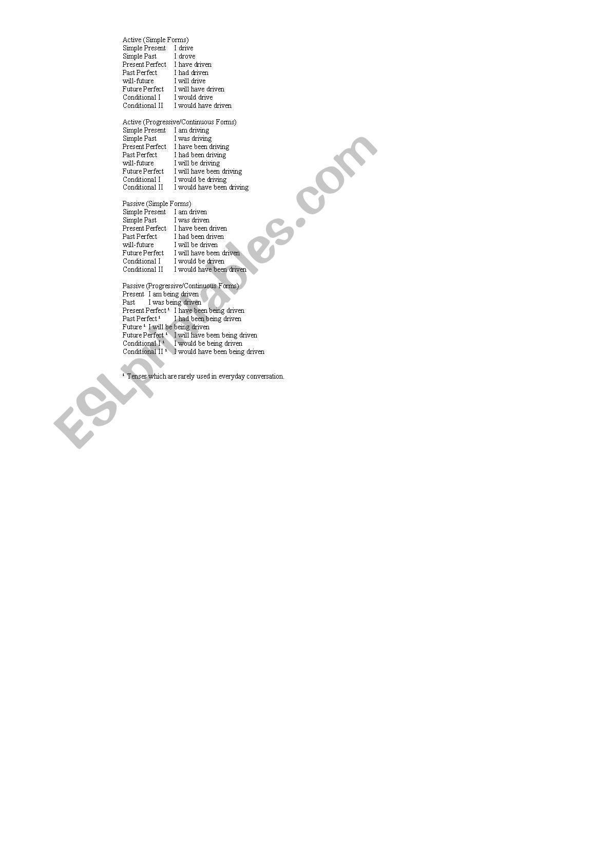 Download and Print passive verb form Listed below